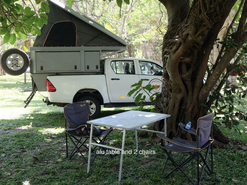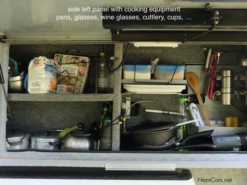 40L Engel Fridge/Freezer, Complete Kitchen, Axe, Lantern, Braai Grid, 2 x Camp Chairs, 1 x Table, 2x Gas Bottles with Holders, Single Burner Gas Stove, all Linen & Sleeping Bags (2 Pax), Air Compressor, Rubber Sand Ladders, Spade, Basic Tool Set, Fire Extinguisher, High-lift Jack, Puncture Repair Kit, Tow Strap, Ratchet Tie-down, 2 x Triangles, Grass Seed Net, Stickers/Reflectors (for Cross-Border Travel around southern africa).